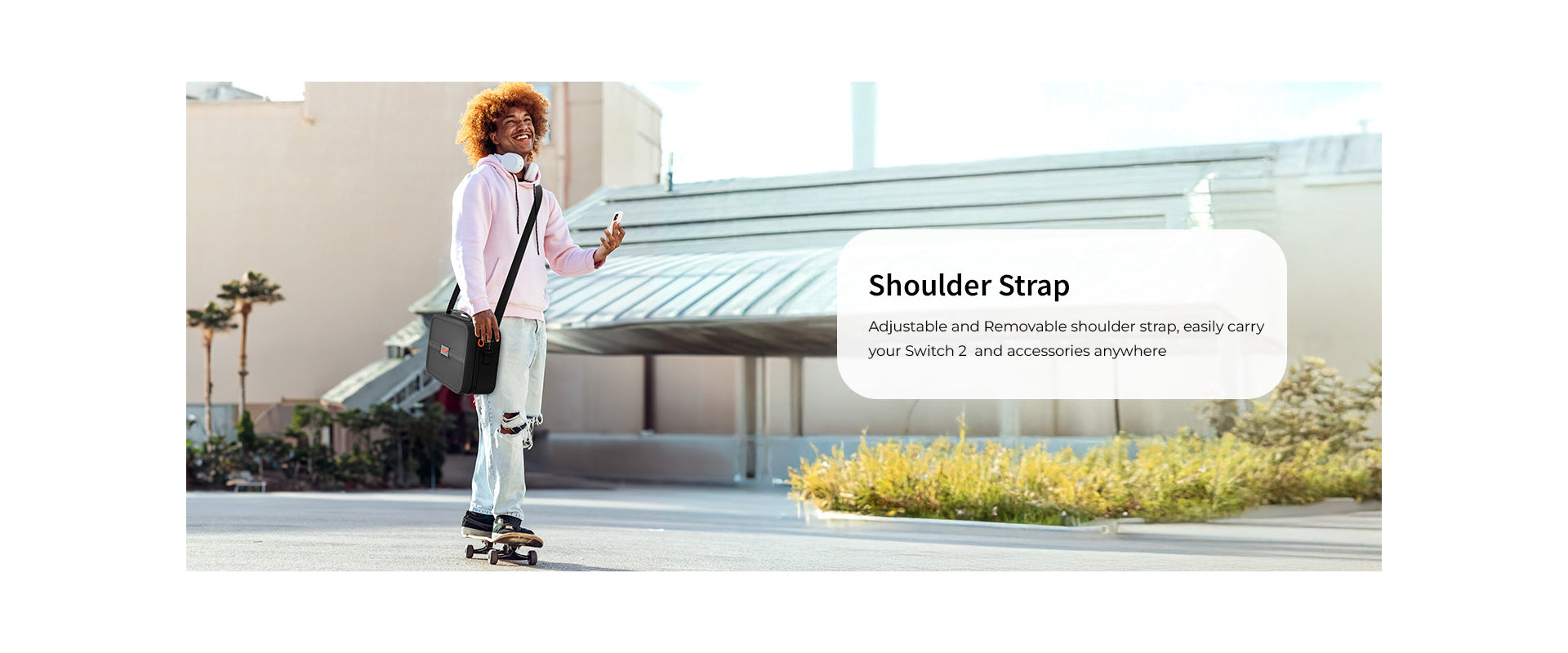 - Travel-Ready and Home-Friendly Design: Whether you're packing for a weekend trip, flying across the country, or simply tidying up your living room, this Switch 2 travel case delivers. Water-resistant, equipped with a smooth dual zipper, and includes an adjustable shoulder strap for ultimate carrying comfort
