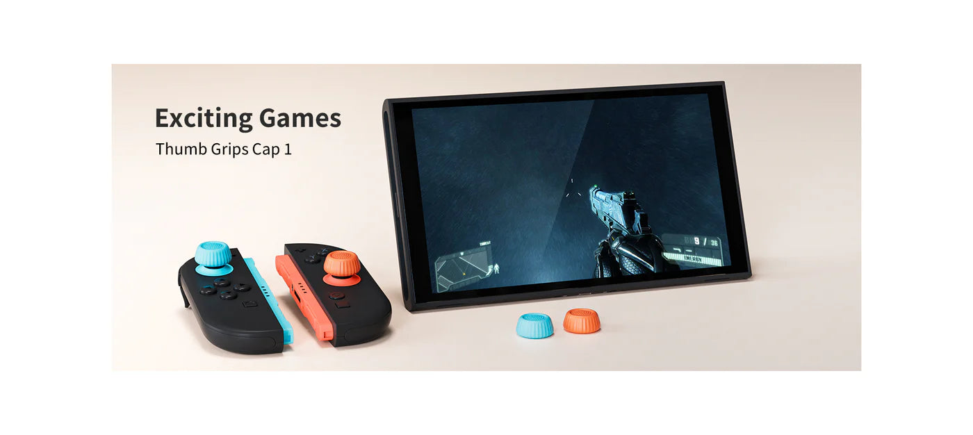 Answer: The thumb grip caps enhance comfort by providing a better grip on the Joy-Con analog sticks, reducing slippage during intense gameplay. They also help reduce thumb fatigue by offering a more ergonomic surface for your thumbs, improving overall control and precision.