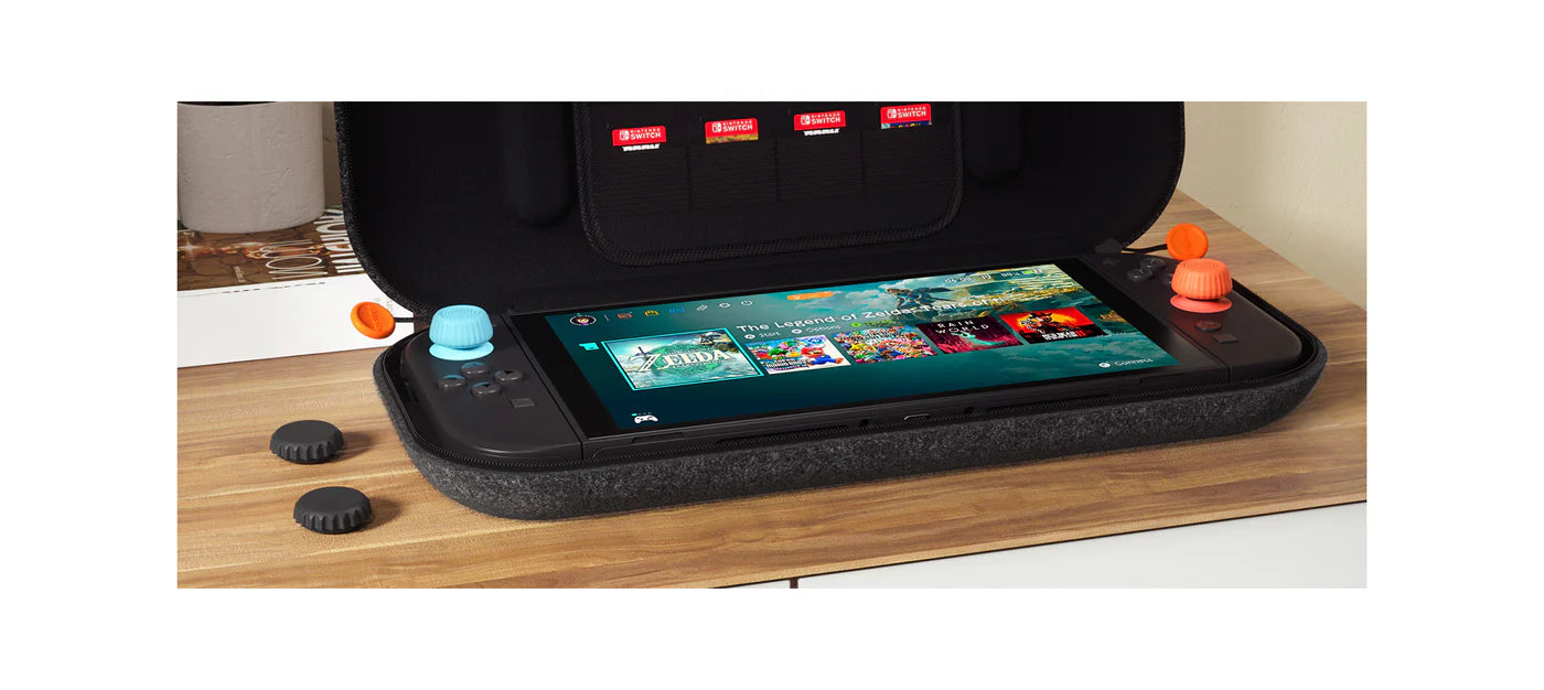 Answer: The set includes four thumb grip caps designed for the Nintendo Switch 2. These caps are made to fit perfectly on the analog sticks of the Joy-Con controllers to provide extra grip and comfort during gameplay.