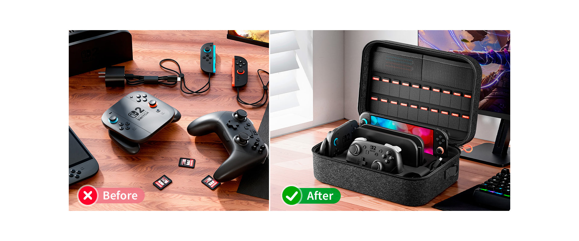 - Travel-Friendly: This compact Switch 2 carrying case is built for portability. It slips easily into backpacks, handbags, or luggage without taking up space—perfect for gaming on the go, wherever you are