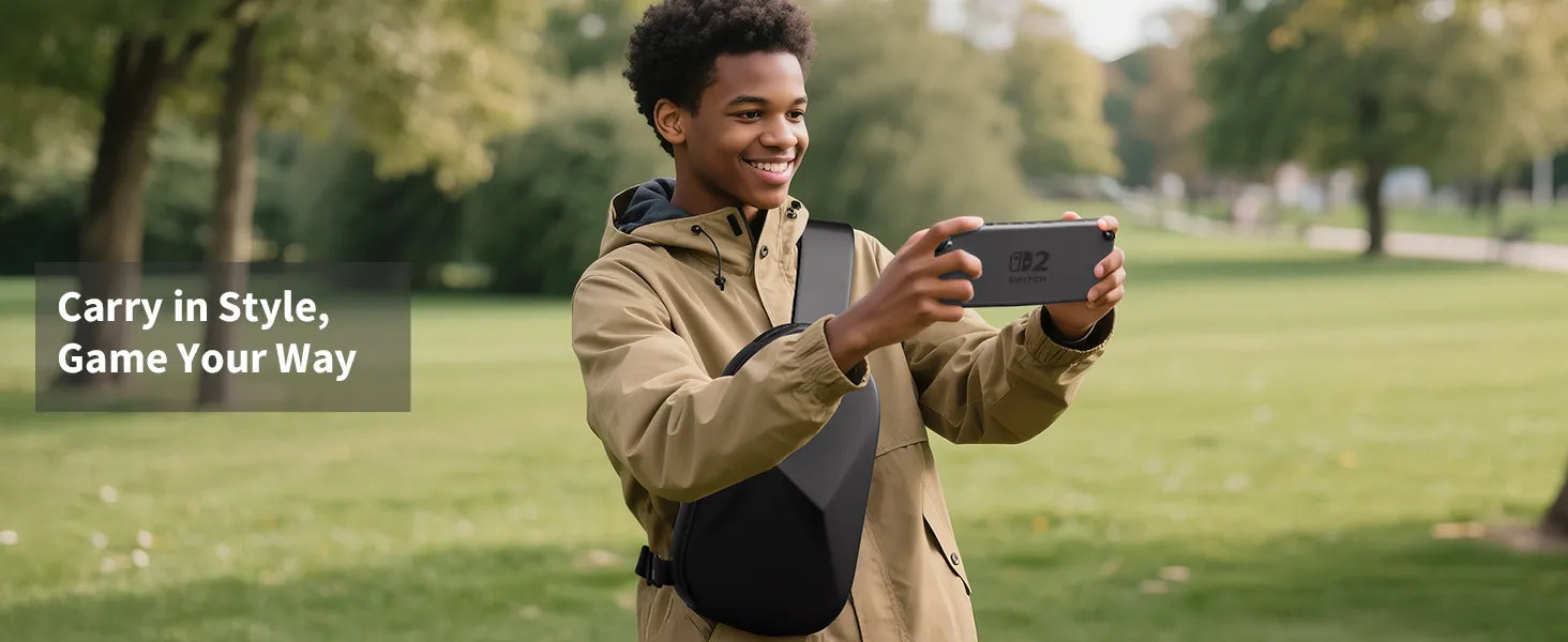 - Serious Storage, Seriously Smart Design: This switch 2 sling bag is purpose-built for Nintendo Switch 2 / Steam Deck players who take their gaming everywhere. With roomy compartments, it fits your Switch 2 or Steam Deck, Pro Controller or Switch 2 dock, AirTag, Switch game cards, iPad, earphones, power bank, and even your sunscreen shirt—perfect for weekend getaways or daily commutes.